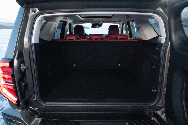 В его интерьере удачно сочетаются мягкие качественные материалы, симпатичные детали и интересные дизайнерские решения. На премиум намекают темно-вишневая или черная мягкая перфорированная наппа сидений, микролифты ручек и крышек, мягкая внутренняя отделка — всего, кроме перчаточного ящика, контурная подсветка и 9 динамиков очень приличной акустики плюс сабвуфер. Брутальную тему поддерживают могучие круглые сопла дефлекторов вентиляции на передней панели, внушительные поручни на стойках кузова и настоящие винты (не имитация!) крепления алюминиевой отделки.