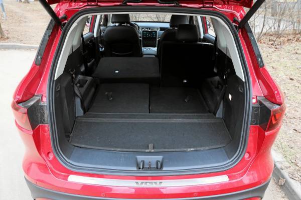 И даже в таком 7‑местном варианте в багажник войдет пара больших сумок или 2–3 чемодана из тех, что провозят в ручной клади. Спинки сидений третьего ряда легко складываются из багажника или из салона — нужно потянуть за ремешок. Получается довольно большой «трюм» с ровным, хотя и высоким полом. Под съемным полом багажника скрывается органайзер, под ним — сабвуфер и свободное место. А докатка обнаружилась под кузовом рядом с глушителем.
