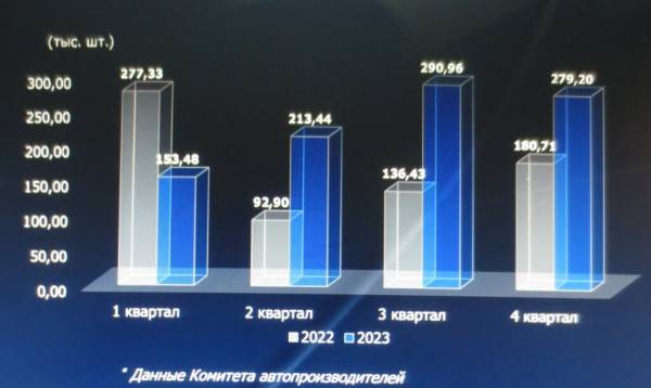 По итогам 2023 года российский авторынок показал двузначный рост. Согласно информации Комитета автопроизводителей Ассоциации европейского бизнеса (АЕБ), основанной на данных автопроизводителей и официальных импортеров, объем реализации за 12 месяцев вырос на 36 % и составил 937 081 новый автомобиль.