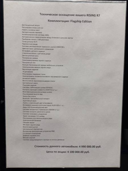 За Rising R7 в богатой комплектации Flagship Edition продавец просит 4 990 000 рублей, без учета скидок и спецпредложений. Замечу, что по этой цене сейчас в России в статусе официальных продается сразу несколько моделей. Среди конкурентов, например: рамный внедорожник Tank 300, богато оснащенный кроссовер Jaecoo J8, рамный Haval H9, бестселлер рынка Geely Monjaro и ряд других автомобилей.