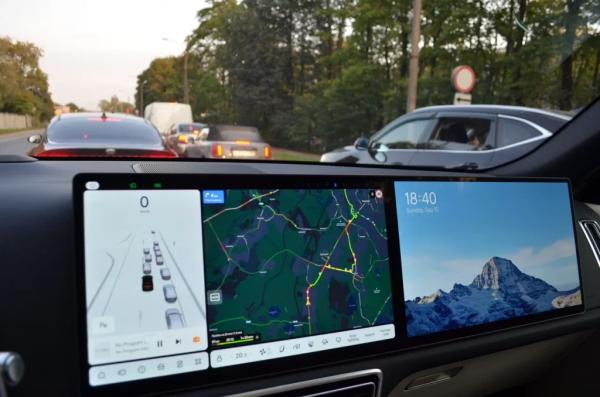 Но автопилот огорчил. Он здесь продвинутый – с лидаром на крыше, и на трассе отлично удерживает машину в центре ряда, не позволяя ей «плавать» по синусоиде от правой полосы разметки к левой. Конечно, руль надолго не отпустишь – система напомнит об этом, но какое-то время можно ехать «без рук». Правда, когда проезжаешь рядом с грузовиком, центрирование машины в полосе вызывает дискомфорт: хочется сместиться левее.