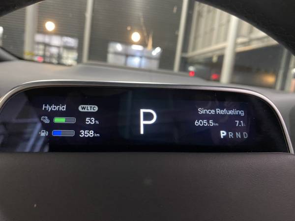 На трассе мотор-генератор работает постоянно. И хотя его практически не слышно, все же можно заметить, что он живет своей жизнью, не реагируя напрямую на нажатие педали газа. В гибридном режиме заряд батареи практически не падает, но и расход топлива (за счет работы ДВС в оптимальном диапазоне оборотов) остается невысоким. Получившиеся у меня 7,1 л/100 км при езде город/трасса в соотношении 20/80 %, для такой большой и динамичной машины – очень хороший результат.