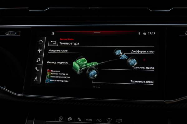 Стандартные настройки не выдают в характере RS Q8 атлета из высшей лиги. Педаль газа задемпфирована, коробка передач флегматична, подвеска деликатна ко всем, кто находится внутри автомобиля, голос умеренно тихий, а расход топлива умеренно низкий. Словно сел в какую-нибудь промежуточную S-версию с комфортным запасом мощности под правой педалью. Едешь в привычном для всех Audi салоне с превосходной эргономикой и многоэтажным медиацентром, наслаждаешься тишиной после рабочего дня в офисе или музыкой из динамиков аудиосистемы Bang & Olufsen.