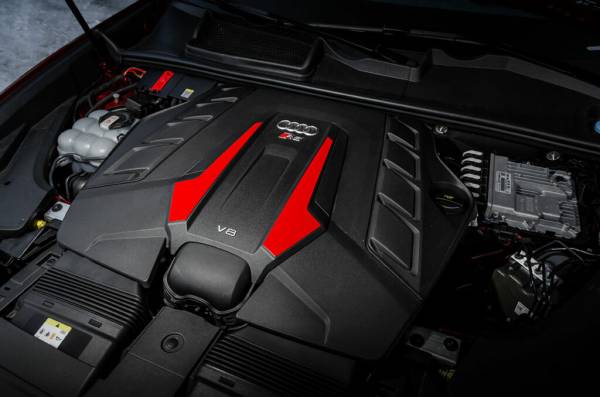 Спонсирует безумие могучий 4‑литровый бензиновый V8 EA825, разработанный в Porsche. У мотора, которым оснащается множество горячих моделей концерна Volkswagen Group, два турбокомпрессора, 48‑вольтовая электрическая надстройка и энерговооруженность в 600 сил и 800 «ньютонов» момента, доступных уже с 2200 оборотов. К двигателю прикручены 8‑ступенчатая автоматическая коробка и система полного привода quattro, способная передавать на заднюю ось до 85 % момента.