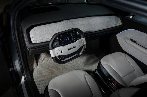 Сегодня ATOM можно посмотреть и пощупать только в виде функционального образца. Ходовые испытания прототипов намечены на конец этого года, предсерийных версий — на первую половину следующего. Впрочем, о дизайне можно судить уже сейчас. Как и эта модель под номером 01, все «Атомы» получат именно такой футуристичный дизайн экстерьера с узкой светодиодной оптикой и распашными на манер «Роллс-Ройса» дверьми, а также интерьер, выполненный в скандинавском минимализме. И даже интегрированные в руль тачскрин медиацентра с джойстиком тоже пойдут в серию.
