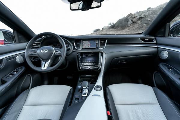 Такая двухцветная обивка салона — эксклюзив новинки. Для QX50 она недоступна.
