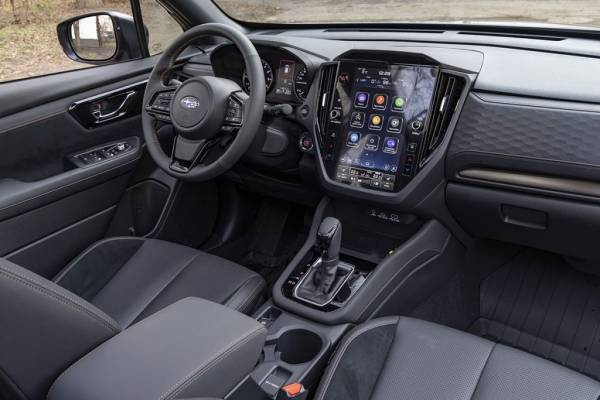Любопытно, что все эти электронные и механические особенности присутствуют и в «Кросстреке», о котором мы недавно писали (см. «5 Колесо» № 9/2025). Понятно, ведь построены обе машины на новой платформе Subaru Global Platform. Но старший из «братьев-кроссоверов» не просто больше в размерах и просторнее салоном. Такое впечатление, что все положительные качества младшего существенно приумножены при создании «Форестера». Очень неплохая шумоизоляция стала превосходной: шум от ветра и шин (отметим, кстати, зимние нешипованные Pirelli Ice Zero) начинает проникать в салон только на скоростях, превышающих разрешенные. А подвеска, за которую мы уже хвалили маленький «Субару», в «Форестере» стала едва ли не идеальной.