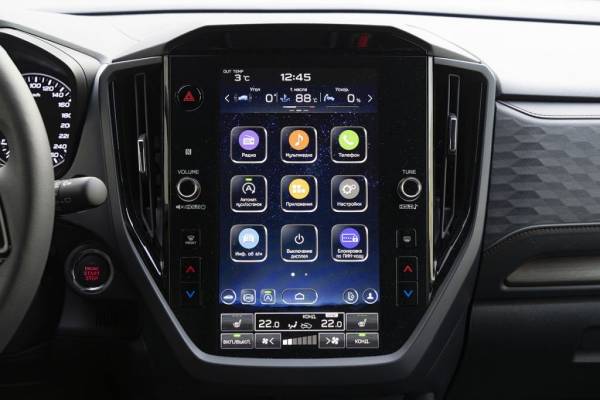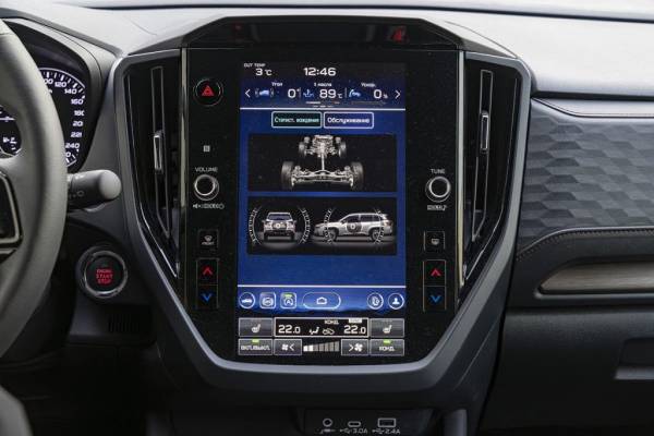 Единственное, что никак не подходит к общей теме ностальгии, это алгоритм управления Х-Mode. Японцы называют ее системой помощи при движении по бездорожью. В зависимости от выбранного водителем режима: «Нормальный», «Снег/Грунт» или «Глубокий снег/Грязь», электроника изменяет параметры работы двигателя, вариатора, полного привода и системы динамической стабилизации. Она же помогает поддерживать постоянную скорость на спуске. Вот только в моем распоряжении нет ни рычажка, ни шайбочки или кнопки — переключать режимы придется через дисплей. Зайти в настройки, выбрать X-Mode и только там их менять. Все это долго, неудобно и, конечно, не по-настоящему.