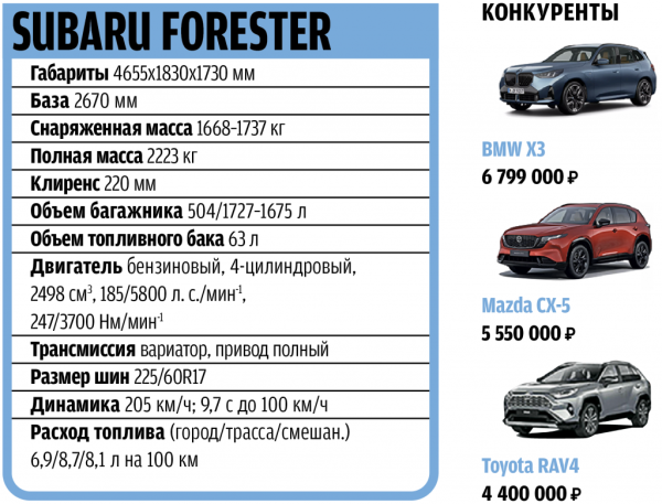 В шестом поколении Subaru Forester сохранил все свои плюсы — это динамичный и комфортабельный кроссовер, хорошо приспособленный для наших направлений, с фирменной системой полного привода и официальной гарантией. Но японские конкуренты, пусть и с 2,0‑литровыми моторами, стоят на 1,5–2 млн дешевле.