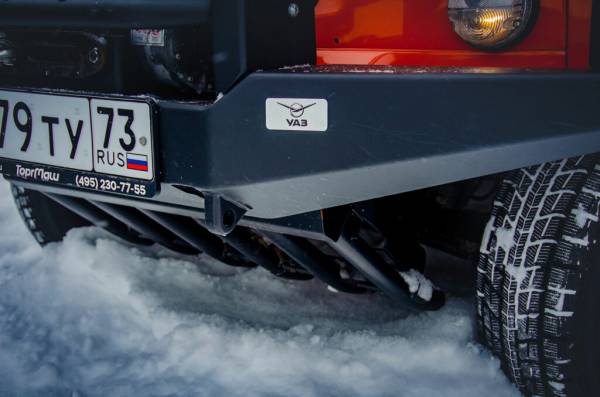 Зато у него — 241 миллиметр дорожного просвета, непробиваемая подвеска, рама, полный привод с жесткоподключаемым передком, мосты спереди и сзади, блокировка дифференциала на задней оси, 5‑ступенчатая механическая коробка передач с понижающим рядом и 2,7‑литровый бензиновый мотор ЗМЗ-40906 на 135 сил и 217 «ньютонов» момента, починить который можно в любом селе нашей родины. Стальной багажник на крыше, мощный «кенгурятник», лебедка и «калитка» с запасным колесом — дополнения экспедиционной версии.