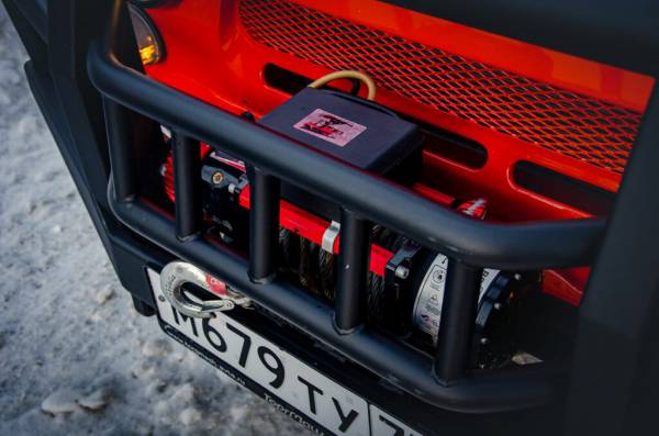 За крупным стальным «кенгурятником» спрятана электрическая лебедка.