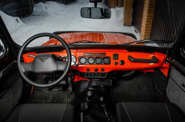 Этот ярко-оранжевый УАЗ «Хантер» в экспедиционном исполнении, который вы видите на фотографиях, тоже инструмент. Он, как Zenos E10S, но для бездорожья. В нем нет даже задних подголовников и центрального замка — того, что мы воспринимаем в автомобилях, как должное.