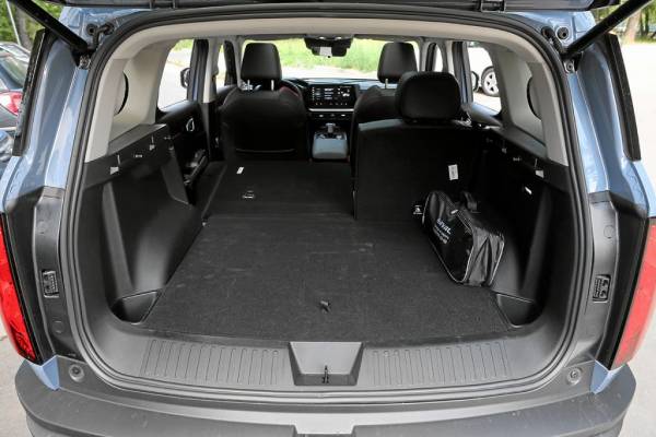 Объем багажника можно увеличить с 493 до 1298 литров, разложив задний ряд сидений. Но даже в минимальном варианте сюда и коляска войдет детская, и полный набор чемоданов. Причем достаточно провести ногой под задним бампером, как дверь багажника откроется. Особенно это удобно на парковке супермаркета, когда руки заняты пакетами, и уж точно удобнее, чем датчик приближения к задней двери.