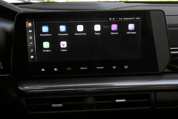 Внутреннее убранство не уступает внешнему. Хороши сиденья, отделанные мягкой перфорированной искусственной кожей. Центральная панель и двери обшиты на удивление приятным материалом, похожим на мягкий нубук. Мультимедийная система с 12,3‑дюймовым дисплеем и стандартными беспроводными протоколами, беспроводной быстрой зарядкой для смартфонов и интуитивно понятным, качественным меню со всевозможными настройками оказалась очень удобной в использовании. Блок климат-контроля сенсорный, но не вызывает вопросов, привыкаешь к нему быстро и не отвлекаешься от дороги.
