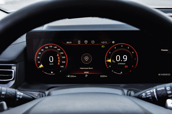 Стиль салона я назвал бы современной классикой. Цифровая приборная панель смонтирована в одном блоке с центральным дисплеем диагональю 12,3 дюйма. Под ним пластиковая накладка, достоверно имитирующая структуру дерева. Верхняя панель торпедо искусно прошита настоящей строчкой. Так же прошиты и дверные панели. Причем здесь рисунок отстрочки — ромбовидный. Ничто не раздражает, в меру глянца, в меру металла. Блок управления климатом как будто перенесен из RR. Кого это удивит! Ведь Питер Матин, в прошлом главный инженер JLR, теперь отвечает за исследования и разработки в Chery! Способ проверенный: китайцы приглашают европейских дизайнеров и инженеров, так что сначала картинка, а за ней и качество продукта подтягивается. Пока лавры законодателей автомобильной моды примерять рано, но повышение качества и сносная цена свое сыграли — продажи автомобилей растут несколько лет подряд, несмотря на пандемию. Графика хорошая, разрешение HD, по мне так тачскрин несколько подтормаживает. Для любителей простых и рациональных решений контент со смартфонов под управлением iOS и Android переносится на центральный дисплей с помощью приложения QD link. Это очень удобно. На приборной панели кроме традиционной информации отображается и температура воздуха в шинах. Причем справа и слева она отличалась на 6 градусов. Технические специалисты объяснили это разной длиной приводных осей.