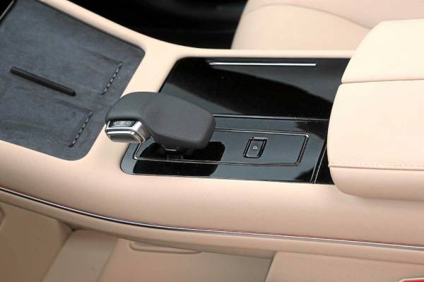 За исключением надписи на ступице руля и совершенно нового рычага коробки — он стал проще и, пожалуй, удобнее, избавившись от игрушечного стеклянного набалдашника — перемен в салоне переименованного М7 немного. Садиться сюда стало удобнее: появились автоматически выдвигающиеся подножки и доступ без ключа. Про обогрев руля я уже рассказал. Беспроводная зарядка на пару телефонов стала более мощной — 50 Вт вместо 40, есть теперь Apple CarPlay/Android Auto, но нет квартета динамиков в водительском подголовнике.