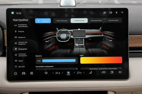 И все то же, почти полное отсутствие физических кнопок. Все в этом салоне: от обогревов до подсветки, от настроек рулевого управления до времени зарядки аккумулятора, от дефлекторов вентиляции до лючка бензобака, замков, зеркал и стекол — можно включать, регулировать, настраивать только с дисплея мультимедийной системы. Конечно, такое решение позволяет добиться того самого минимализма роскоши, а интерьер без кнопок как бы намекает на то, что вы находитесь в салоне электромобиля. Но что будет, когда на улице не ноябрьские минус один, а февральские минус тридцать? Ледяной экран так же быстро будет реагировать на прикосновение закоченевшего пальца? Безусловно, появление хотя бы нескольких кнопок: обогревов, «музыки», кондиционера — сделает машину удобнее и безопаснее на наших дорогах.