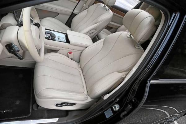В остальном — все та же приятная кожа цвета сливок (о, простите, «оттенок цветущего абрикоса»!) в сочетании с темно-коричневым мягким верхом торпедо, убедительной имитацией дерева и двумя тонкими полосками благородного хрома. Минимализм класса люкс — так можно назвать стиль этого интерьера. Качественные материалы, мягкие поверхности и плавные переходы, минимум деталей и острых углов, все крышечки, ручки и ящички облагорожены микролифтами и мягкой обивкой. Симпатичная и ненавязчивая подсветка, цветом которой можно играть до бесконечности. Все так же здорово смотрится огромная панорамная стеклянная крыша.