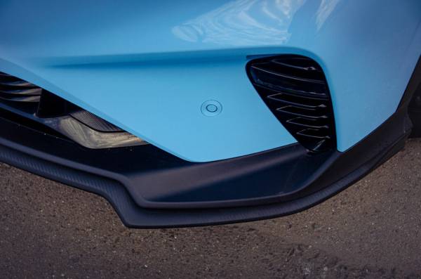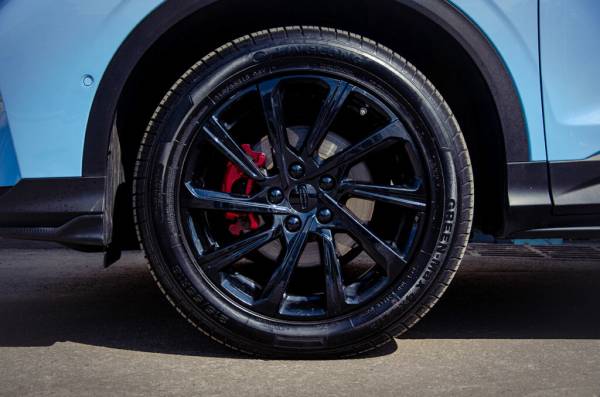 Лазурный оттенок кузова отлично сочетается с черной крышей, черной решеткой радиатора, черным задним и передним бампером с двойным «клыкастым» сплиттером и черными 18‑дюймовыми дисками. На вид очень дерзко! Термин «кафе-рейсер» мог бы оптимально подойти этой конфетке «скитлс», если бы она еще рычала из четырех своих выхлопных патрубков. Но сочным голосом Coolray не наградили, как и более мощным мотором.