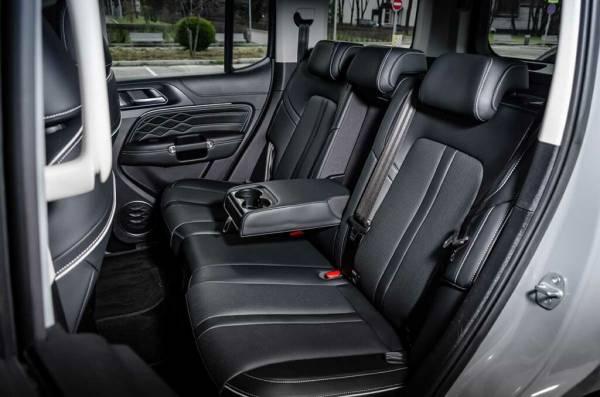 Но внутри все с точностью до наоборот. Поднимаешься в салон «трехсотки» через высокую ступеньку, а тут роскошь, лоск и стойкие ассоциации с «Геликом» — дизайн круглых дефлекторов обдува уж больно «мерседесовский». Впрочем, не самое плохое сравнение. Внутри много кожи, хрома, гаджетов и никакой утилитарности, на которую намекала внешняя картинка. Ну и как в такой интерьер садиться в сапогах с килограммами глины на подошве?! Что ж, нюансы премиума, коим хочет быть Tank. Поэтому и коврики тут не резиновые, а текстильные.