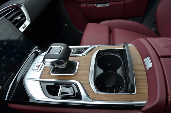 Кабель для медленной домашней зарядки спрятан в подполе багажника, но у него нестандартный разъем — как у розеток бытовых электроплит. Возможно, в Китае этот стандарт является распространенным, но у нас таких розеток в общественных местах нет от слова совсем. Здесь же в багажнике есть кнопки опускания кормы — ведь кроссовер оснащен пневмоподвеской! Через меню настроек можно увеличить дорожный просвет, чтобы уверенней чувствовать себя на проселке и не бояться задеть днищем длинного кузова пандус подземной парковки. Внедорожные качества кроссовера «Хончи» оставим за скобками: хотя электродвигатели здесь есть на обеих осях, вряд ли его владелец решится бороздить на этой роскошной «яхте» бездорожье.