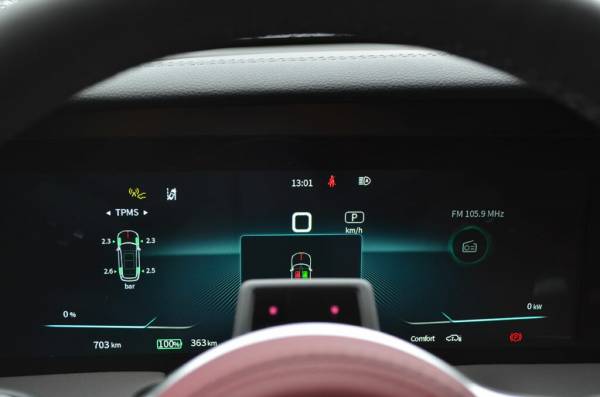 При неспешной езде средний расход электричества составляет 25 кВт на 100 км пути. Если «тошнить» со скоростью 60 км/ч, можно уменьшить расход примерно до 20 кВт — но это максимум, которого мы смогли добиться на тесте. Причем отключение климат-контроля на расход почти не влияет. Производитель заявляет, что с 99‑киловаттной батареей можно проехать больше 500 км, но когда я забирал машину у дилера со стопроцентным зарядом, на панели приборов был указан расчетный запас хода 365 км. Однако, как показала практика, и эти цифры дают лишь приблизительную картину: в реальности вы проедете еще меньше. По идее, такого запаса хода нам должно было хватить, чтобы доехать с юга Питера до Выборга, покататься по окрестностям, а затем вернуться назад. Но нам не хватило! При этом зарядить машину не удалось ни на одной из пяти станций зарядки, которые были по маршруту.