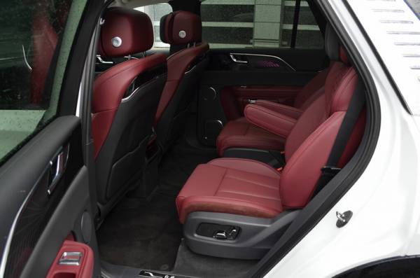Но вообще внутри кроссовер смотрится здорово. Сиденья имеют превосходный профиль и обиты дорогой кожей, из-за чего в салоне пахнет не хуже, чем в том же «Роллс-Ройсе». Но обивка потолка и стоек — тканевая, чего вы никогда не увидите в настоящем «люксе». На среднем ряду два раздельных сиденья, между которыми проход на третий ряд. Да, наш автомобиль шестиместный! И хотя на галерке поместятся разве что школьники начальных классов, здесь конструкторы предусмотрели отдельный пульт климат-контроля и USB-зарядки. Третий ряд складывается при помощи электроприводов, управляемых кнопками из багажника. И если его убрать в пол, получится ровное грузовое пространство внушительных размеров. Теперь понятно, почему китайцы не стали делать дополнительный багажник под капотом, хотя места здесь полно: под декоративной пластиковой накладкой спокойно поместилась бы полноразмерная запаска, как у «Нивы».