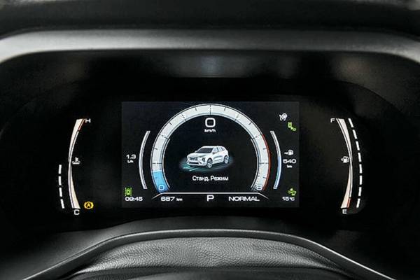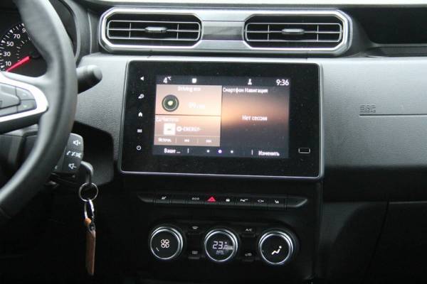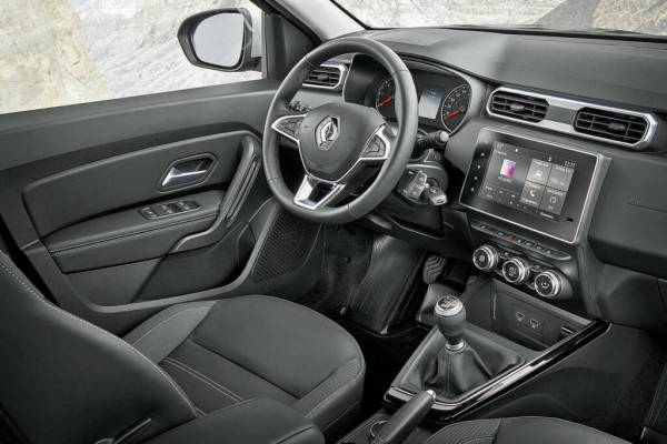 Жесткий пластик и монохромный экранчик на панели приборов заимствованы у Renault Arkana.