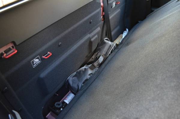 Кстати, второй ряд здесь не для галочки. На нем с комфортом устроится пара человек крупной комплекции, или трое — не очень крупной. Конечно, далеко и долго ехать здесь будет тяжеловато, но, к примеру, доставить ремонтную бригаду от бытовки до вахты — запросто. А если нужно довезти какое-то ценное оборудование, которое нежелательно класть в открытый кузов, то его можно поставить в салон, подняв подушку заднего дивана. Других вариантов хранения, закрытых от осадков и посторонних глаз, в пикапе не предусмотрено, и это главный его минус для простого потребителя. Здесь задний ряд — вместо привычного багажника: в спинках передних кресел даже предусмотрены откидные крючки, на которые можно вешать пакеты из гипермаркета. Но это если ехать вдвоем-втроем. При полной посадке поклажу можно закидывать только в кузов и надеяться, что небеса не преподнесут сюрпризов с осадками.